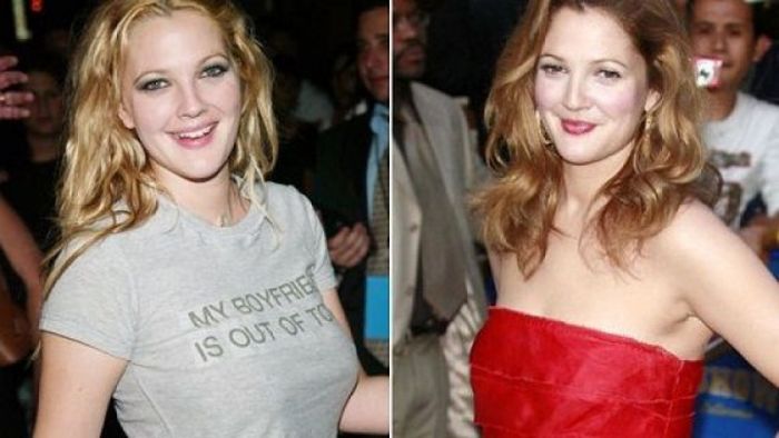 Дрю Бэрримор. Актриса сама рассказала, что уменьшила грудь, так как устала от повышенного внимания мужчин к своему бюсту и постоянно чувствовала дискомфорт, как физический, так и психологический.