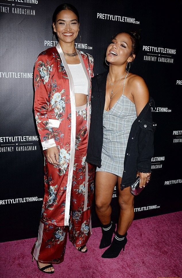 Американская певица и актриса Кристина Милиан с австралийской топ-моделью Шаниной Шейк на празднике в Лос-Анджелесе