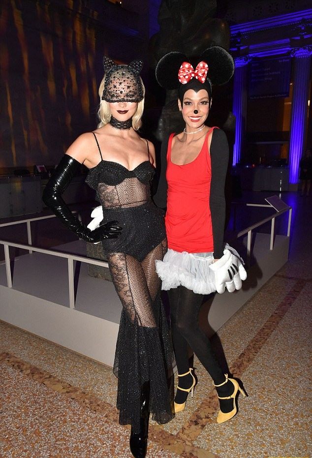 Супермодель, облаченная в прозрачное кружевное платье с откровенным декольте и эффектную кошачью маску, с удовольствием позировала на камеру.