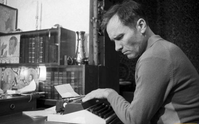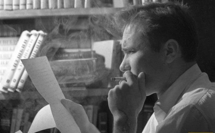 Василий Шукшин, за работой в своем кабинете, Москва, 1973 г.