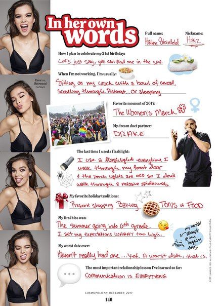 Хейли Стейнфилд в журнале Cosmopolitan США 05 ноября, 2017 2 147 Хейли Стейнфилд (Hailee Steinfeld) в журнале Cosmopolitan США (декабрь 2017) 0 Рубрика: Знаменитости