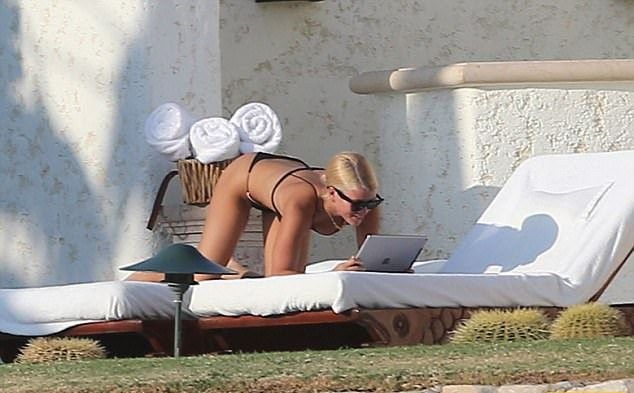 Белокурая красотка продемонстрировала сексуальные формы в миниатюрном купальнике во время принятия солнечных ванн.
