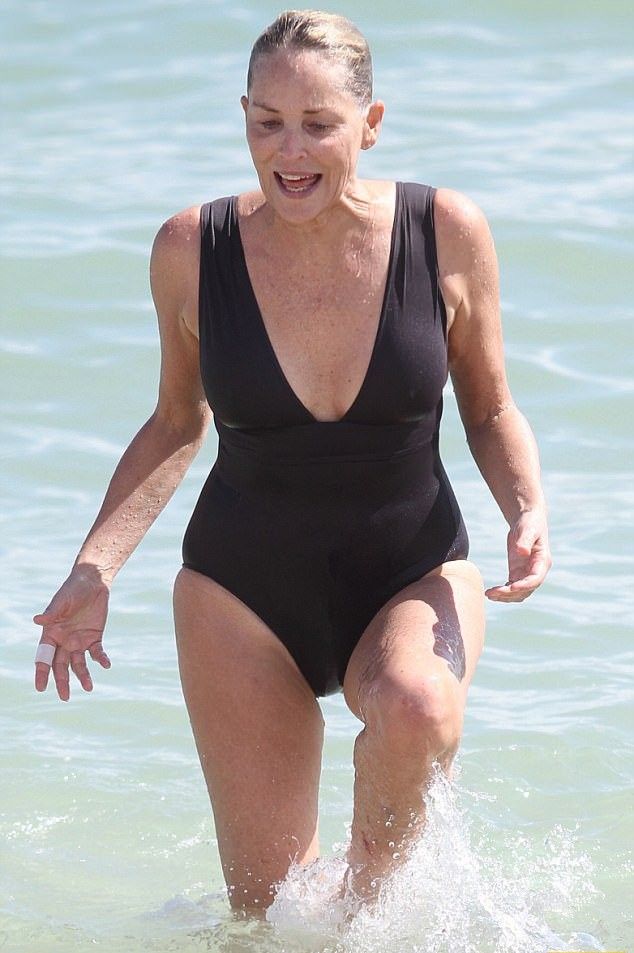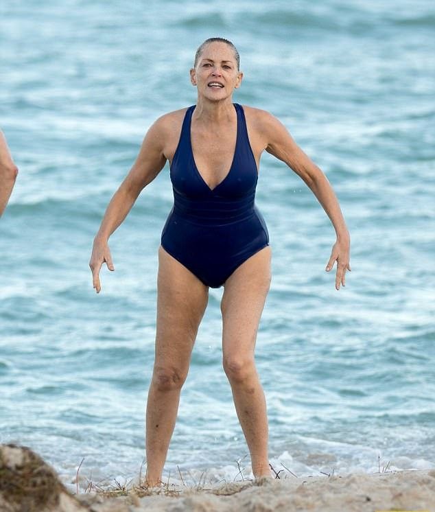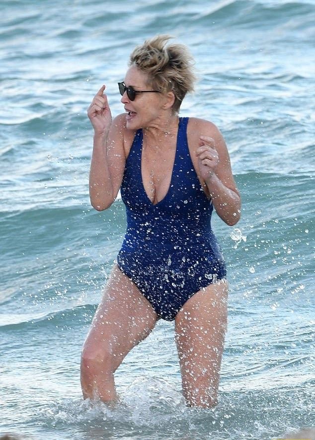 Голливудская звезда Шэрон Стоун была замечена вездесущими фотографами, когда щеголяла в стильных сдельных купальниках по одному из пляжей Майами.