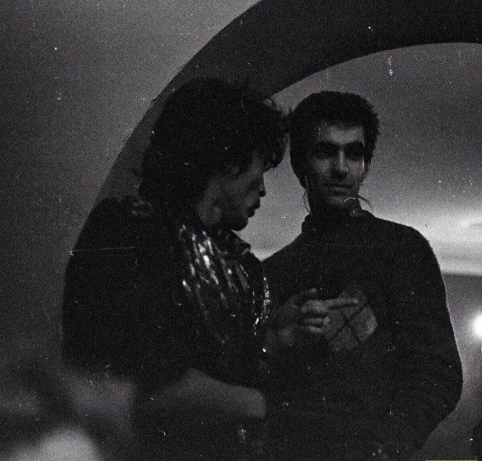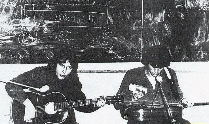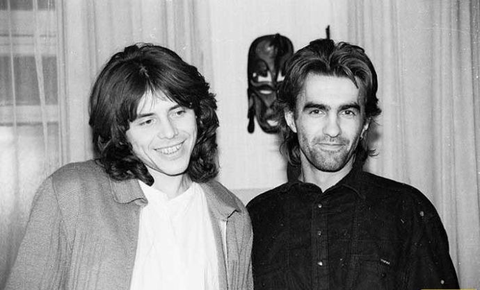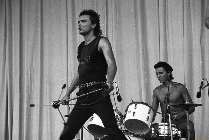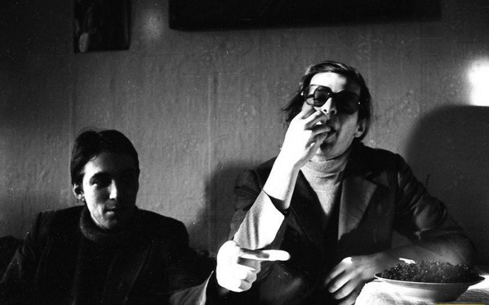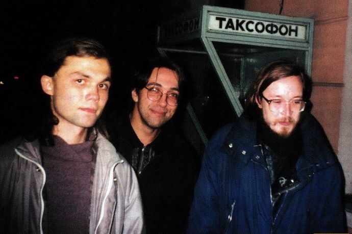 На этом снимке Летов узнаваем, а слева от него Сергей Курехин (музыкант-авангардист, автор медиавируса «Ленин — гриб»).