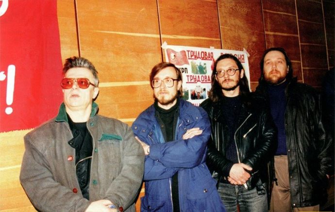 Смотрите, какие мощные мужчины. Эдуард Лимонов, Егор Летов, Константин Рябинов (он же Кузя, сооснователь группы «Гражданская оборона»), Александр Дугин.