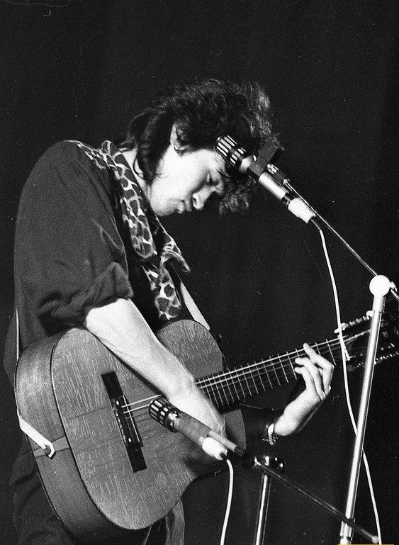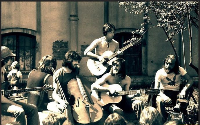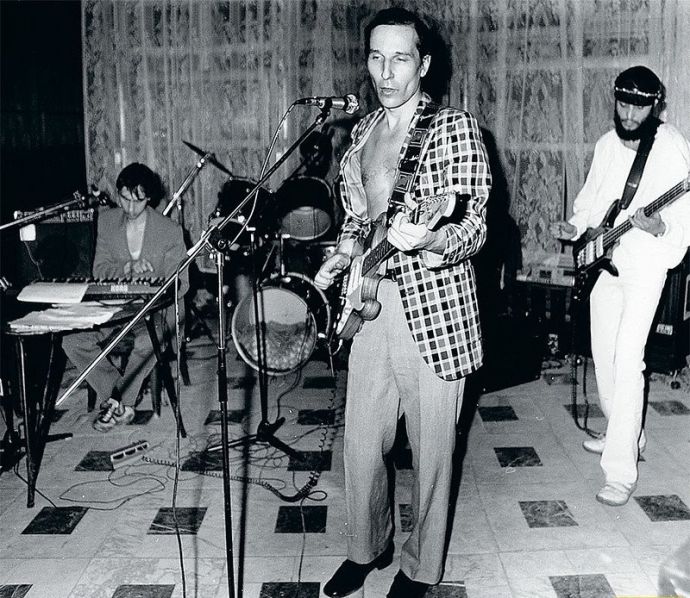 Совсем молодой «Аквариум», а стоит с гитарой Майк Науменко («Зоопарк»).