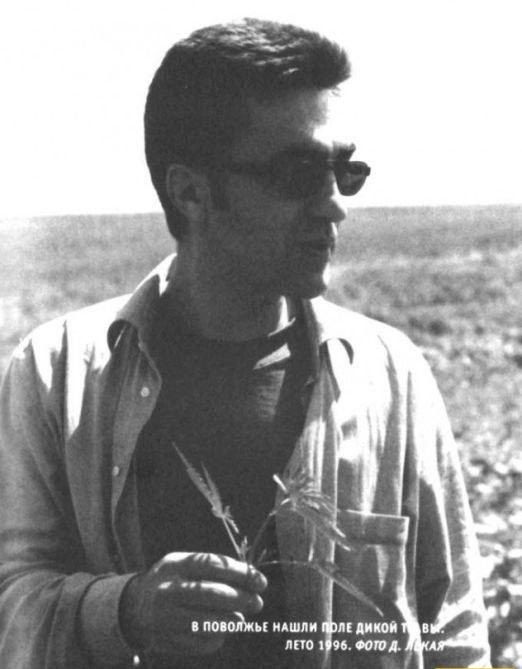Человек, похожий на Вячеслава Геннадьевича, держит в руках, предположительно, листья растительного происхождения, напоминающие коноплю.