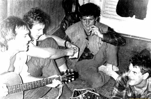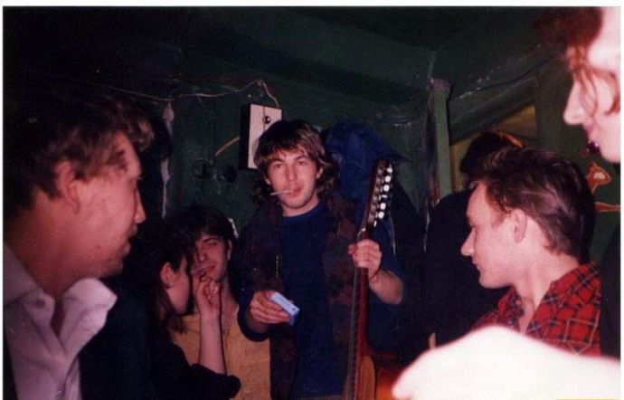 Снова «Камчатка». Александр Башлачев на одной из вечеринок. Вообще, там свадьба у кого-то была. Да и Цой с Бутусовым, мелькавшие выше, тоже, кстати, со свадьбы, но другой.