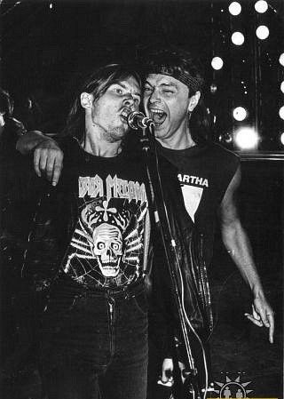 Кто это у нас тут? Мама родная. Это ж Паук (Сергей Троицкий, «Коррозия металла») и Кинчев.