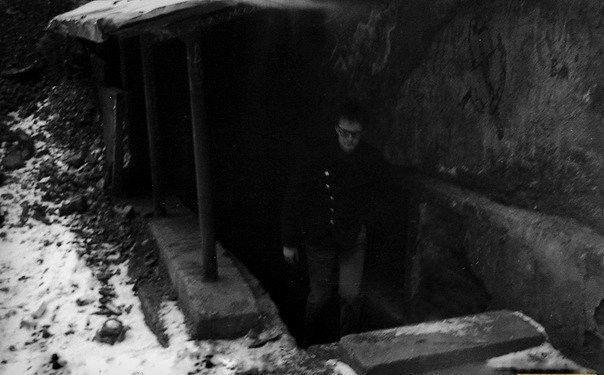 Андрей Машнин («МашнинБэнд») выходит из знаменитой котельной. Рисунок на стене прекрасен. Серп и лопата.