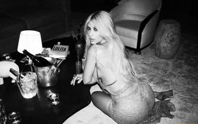 Соблазнительные фото пышногрудой представительницы семейства Кардашьян, позирующей в откровенных полупрозрачных одеждах, появились в популярном журнале Violet Grey.