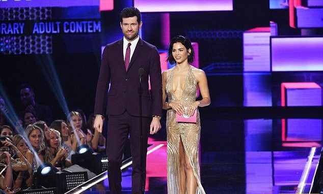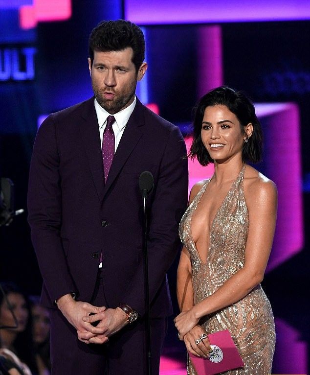 Для American Music Awards Дженна выбрала "голое" платье цвета шампанского с открытой спиной, дерзким разрезом и очень вызывающим декольте. Причем, под столь откровенным нарядом не было и намека на нижнее белье!