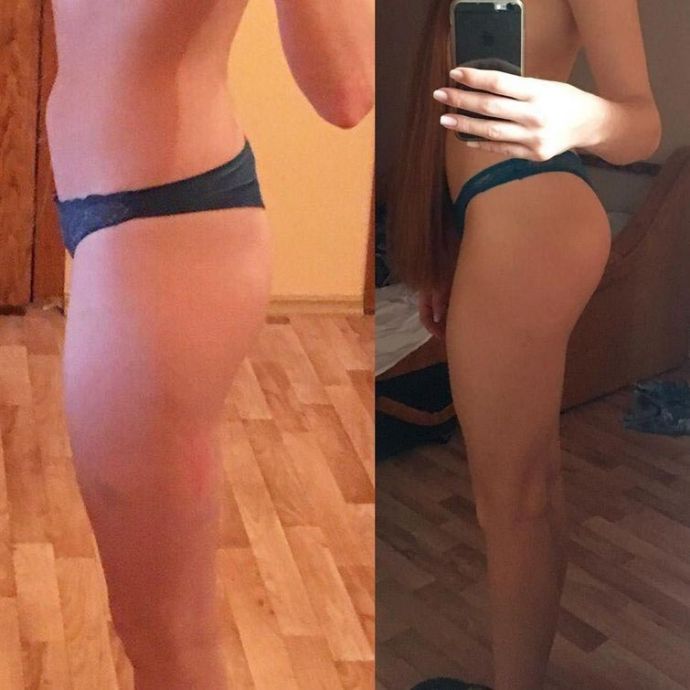 "Слева — после операции на колено, после которой я лежала 2 месяца в прямом смысле(и это ещё здоровая нога, левая вообщем как тряпочка была, я ревела, когда мне ее разминали). Меж фото полгода различия, из которых 2 месяца не было спорта и жуткий недостаток в питании. Итог может не огромной, но для меня это прогресс, ведь после операции я крест на себе поставила", — подпись Анастасии к фото.
