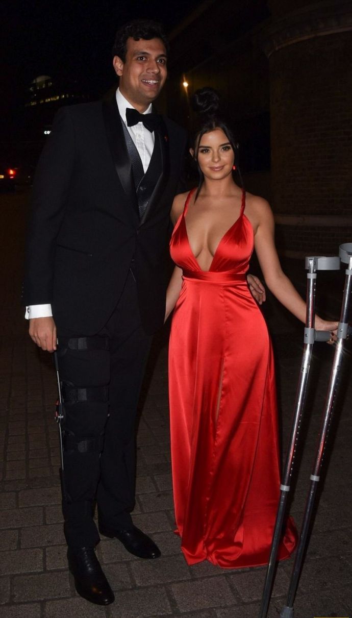 Для мероприятия пышногрудая брюнетка выбрала сногсшибательное ярко-красное атласное платье в пол с дерзким декольте и сексуальным разрезом.