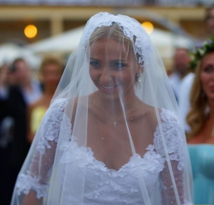 Известная фигуристка вышла замуж во второй раз в 40-летнем возрасте. Свадьбу Татьяна Навка и ее супруг Дмитрий Песков с размахом отпраздновали 1 августа 2015 года в самом шикарном сочинском отеле - Rodina Grand Hotel & SPA.