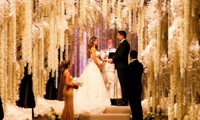 Одна из самых высокооплачиваемых американских телеактрис во второй раз вышла замуж в 43 года. Джо Манганьелло и София Вергара устроили роскошный праздник во Флориде, а к алтарю невесту вел ее 23-летний сын. Счастливая новобрачная выбрала для своего торжества платье от Zuhair Murad.
