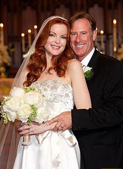 Отчаянная домохозяйка с рыжей гривой волос впервые официально вышла замуж в 44 года за брокера Тома Махони. История знакомства этой пары похожа на сказку. Марсия увидела его впервые в цветочном магазине и моментально влюбилась. Она оставила свой номер телефона продавцу на тот случай, если незнакомец зайдет еще раз.