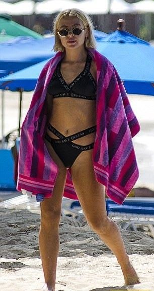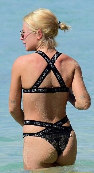 Бикини Вудли было украшено надписью «Боже, храни Королеву» и очень шло девушке! Звезде реалити удалось привлечь к себе внимание окружающих!