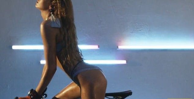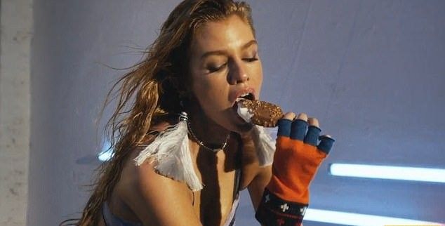 Во время провокационной съемки 27-летняя модель предстала в образе сексуальной спортсменки, томно позирующей на велосипеде и эротично поедающей мороженое.