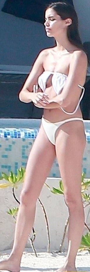 26-летняя красотка предстала в миниатюрном бикини и полупрозрачной тунике, под которую она предусмотрительно не надела нижнее белье.