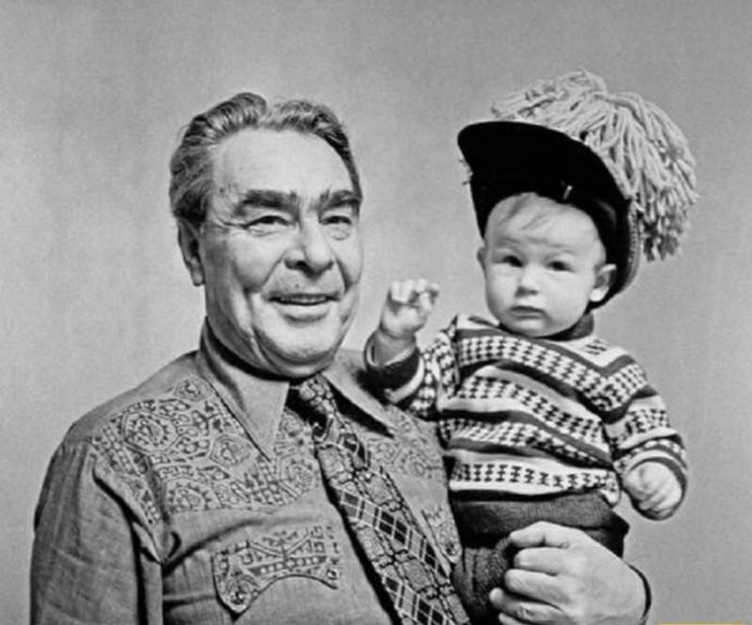 Генеральный секретарь ЦК КПСС держит на руках правнучку Галю в первый день 1973 года.