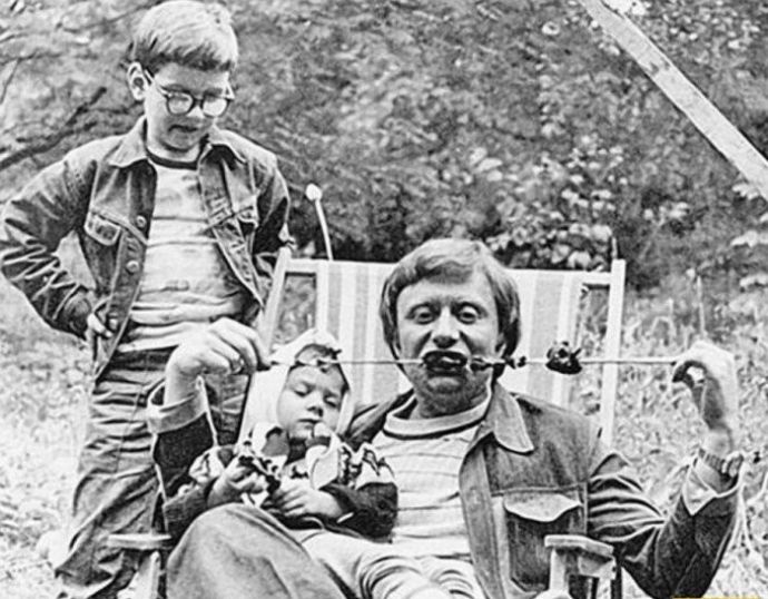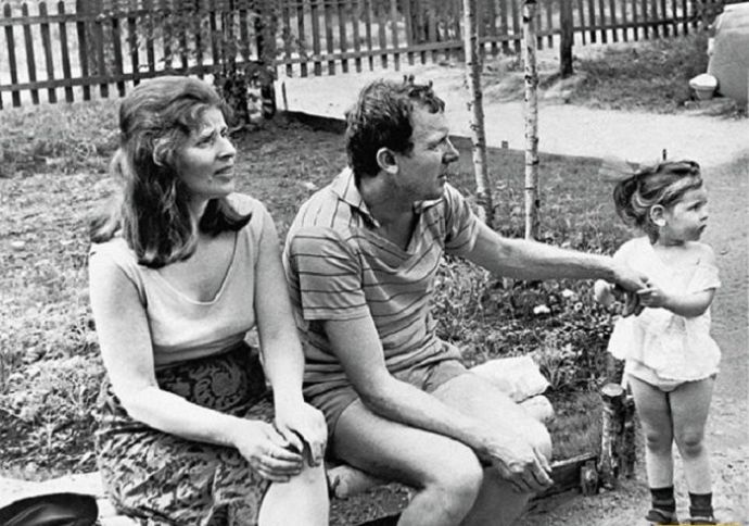 Русский актер с женой и дочерью Марией на даче в поселке Горьковский в 1967 году.