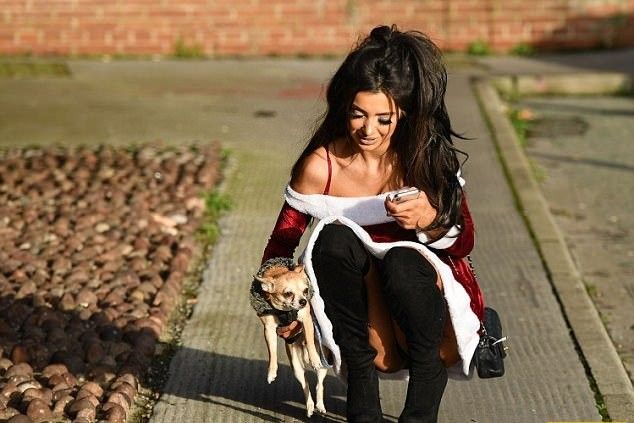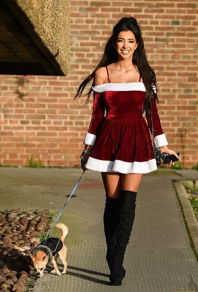 Гламурная Хлоя Хан в откровенном костюмчике Санты прошлась по Ливерпулю