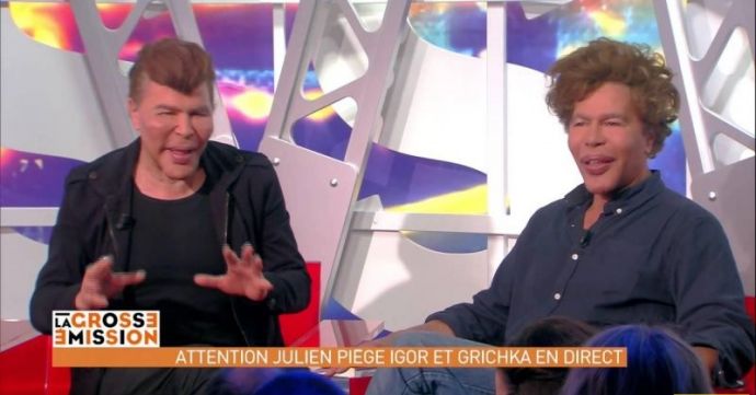 С каждым годом лица знаменитых французских телевизионных ведущих братьев Игоря и Гришки Богдановых (Igor и Grichka Bogdanoff) все больше напоминают уродливую маску. Популярные телеведущие, имевшие невероятный успех в 80-х, сделали не один десяток операций, пытаясь сохранить былую молодость и красоту. Но что-то пошло не так и сегодня братья могут без грима сниматься в роли монстров из фильма ужасов.