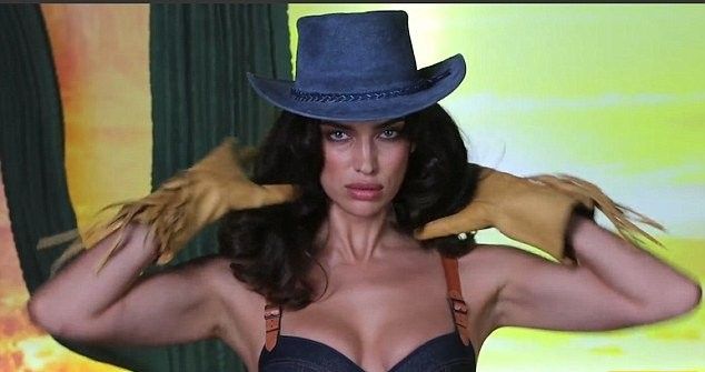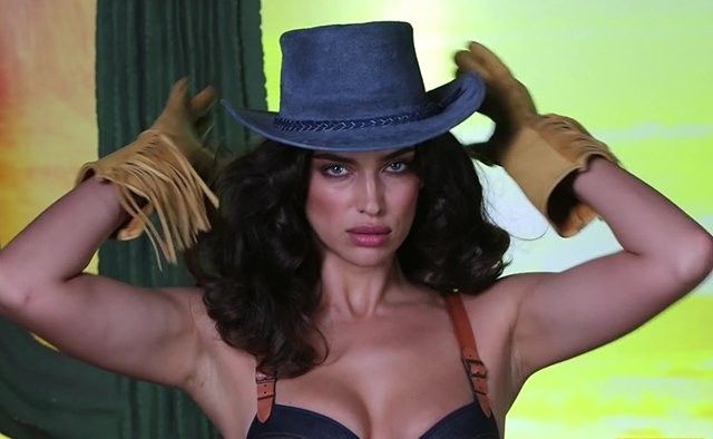 Российская супермодель Ирина Шейк поразила своей красотой и сексуальностью, когда позировала в образе соблазнительного ковбоя для новогоднего календаря LOVE. 31-летняя звезда была облачена в откровенное джинсовое боди с кожаным ремнем и кобурой, а голову модели украшала эффектная ковбойская шляпа.