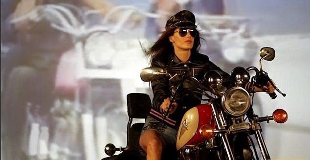 36-летняя супермодель и мать двоих детей предстала в образе байкерши, соблазнительно оседлавшей "железного коня".