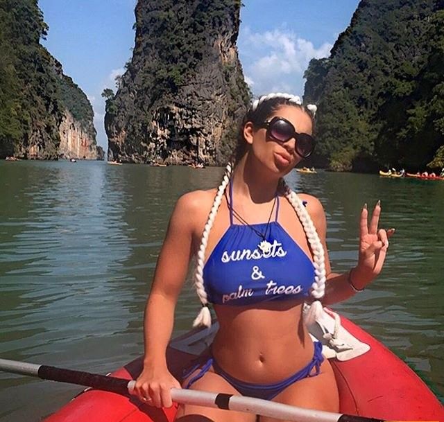 Роскошная брюнетка была облачена в неоновый купальник цвета фуксии, как нельзя лучше подчеркивающий соблазнительные формы 22-летней актрисы.
