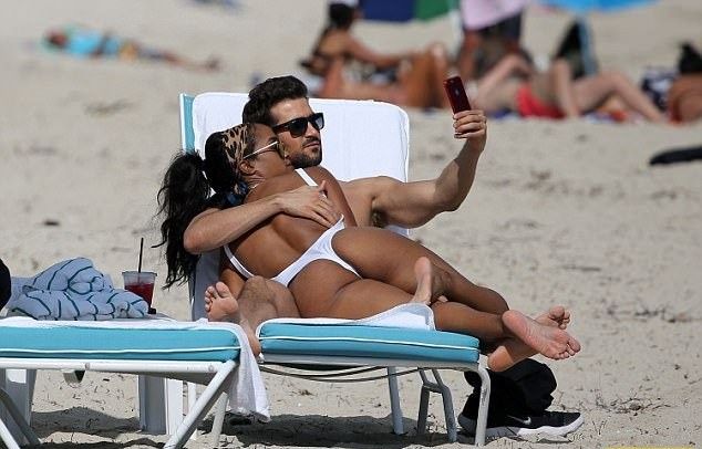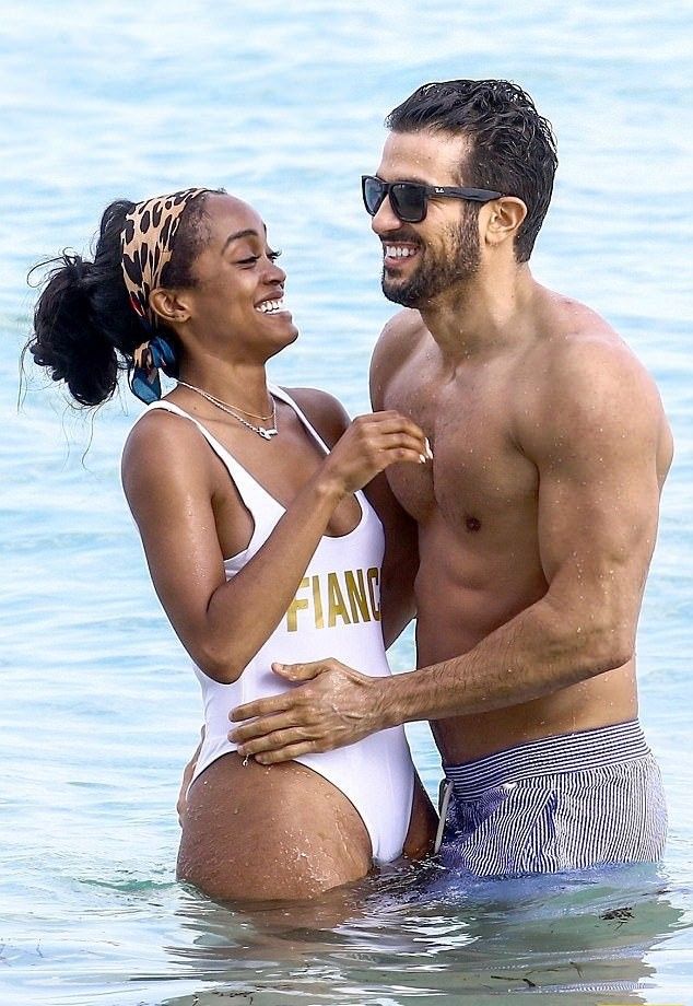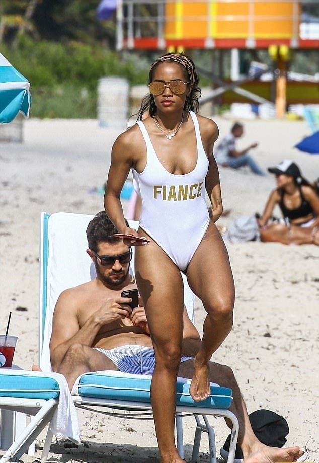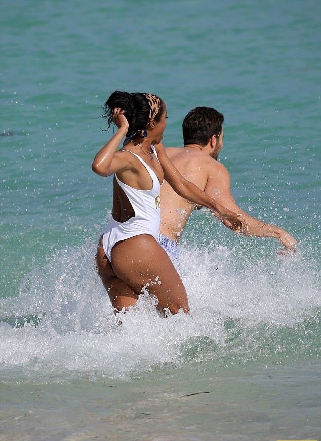 Смуглокожая красотка была не одна и попала в объектив папарацци вместе со своим женихом Брайаном Абасоло. Счастливые влюбленные наслаждались обществом друг друга и не замечали никого вокруг.