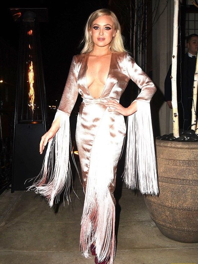 Сексапильная звезда не оставила пространства для воображения, когда появилась на мероприятии в нежно-розовом шелковом платье с дерзким декольте до талии.