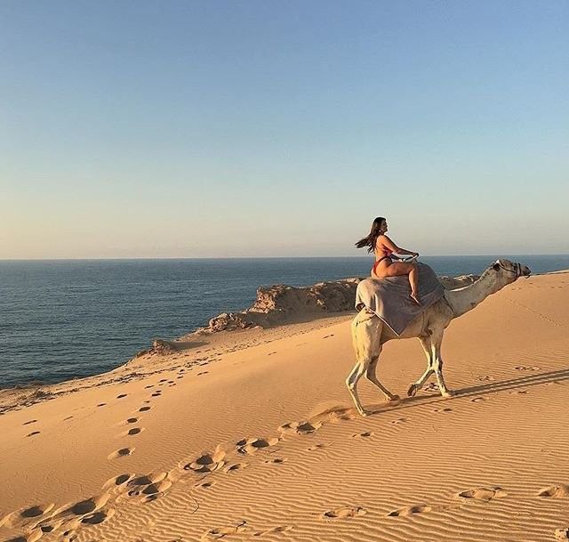 На этот раз успешная модель во время фотосессии не только дерзко и задорно позировала на камеру, но даже оседлала верблюда!