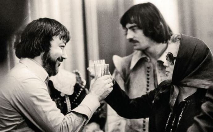 Георгий Юнгвальд-Хилькевич, Алиса Фрейндлих и Михаил Боярский пьют за первый съемочный день