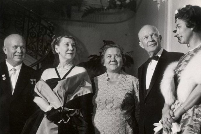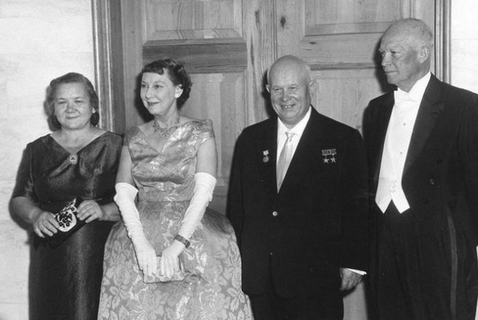супруги Хрущевы с 34-м президентом США Дуайтом Дэвидом Эйзенхауэром и его супругой Мейми.