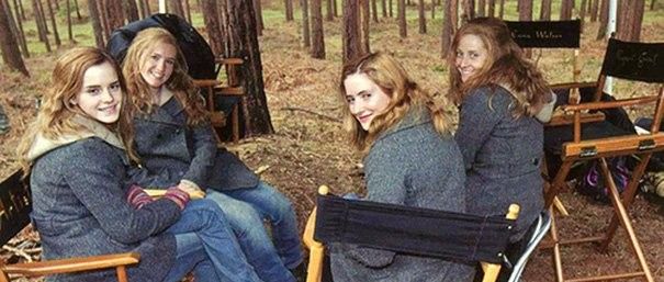 Эмма Уотсон и ее дублеры на съемках «Гарри Поттера».