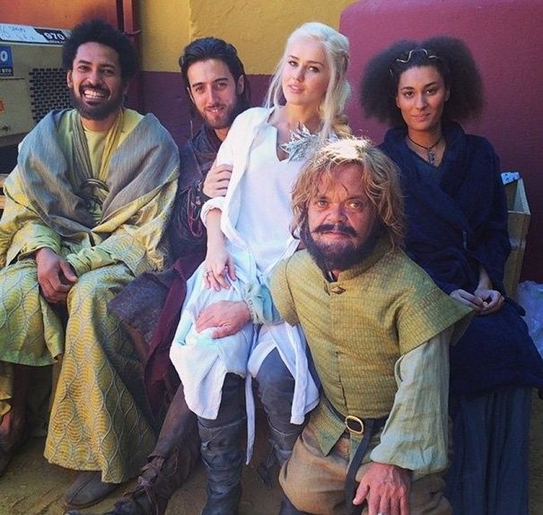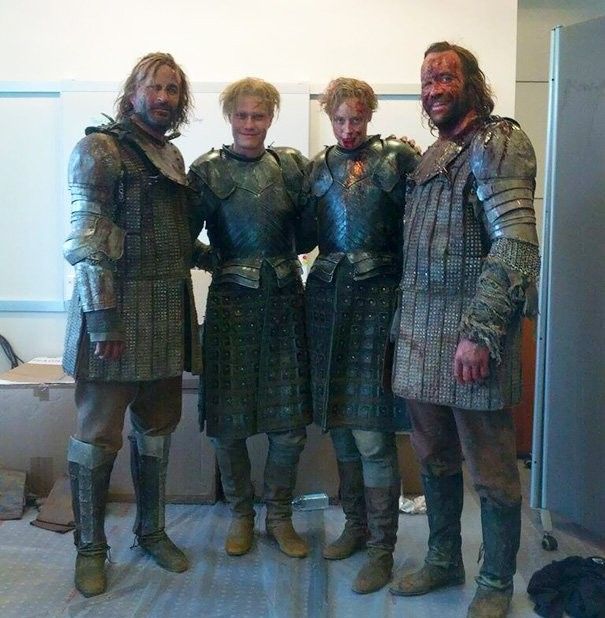Гвендолин Кристи и Рори Макканн со своими дублерами на съемочной площадке «Игры престолов».