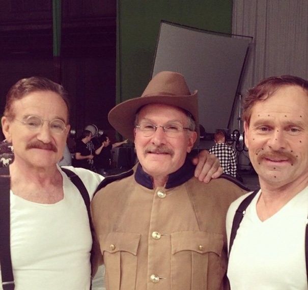 Робин Уильямс и его дублер Майк Митчелл на съемках «Ночи в музее — 3».