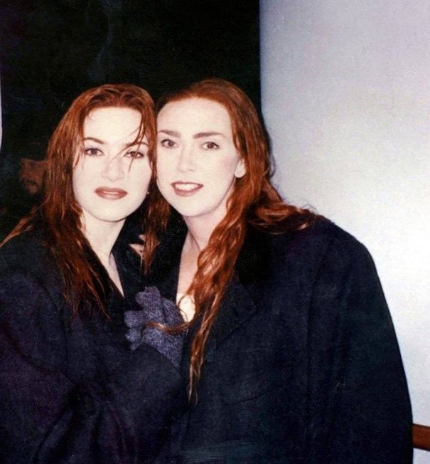Кейт Уинслет и ее дублер Сара Францль на съемках «Титаника».