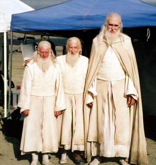 Иэн Маккеллен и его дублеры на съемках «Властелина колец».