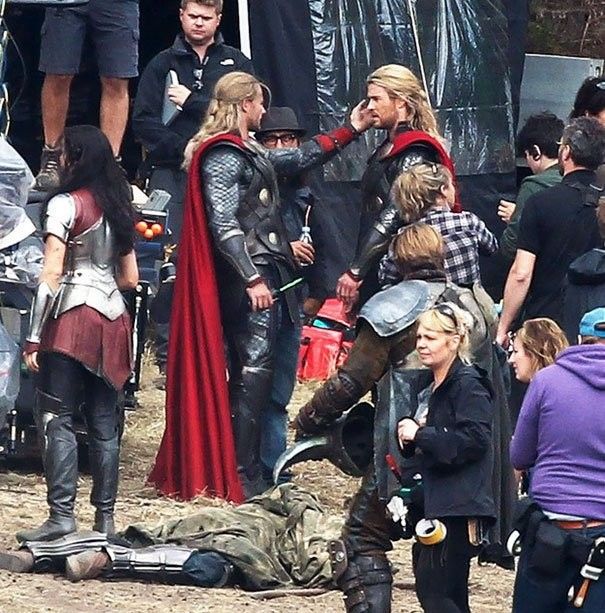 Крис Хемсворт и его дублер на съемках «Тора».