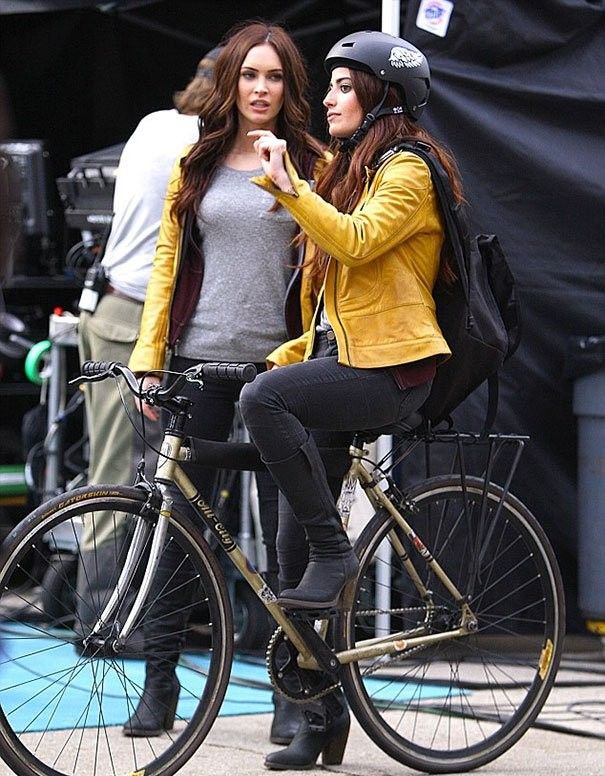 Меган Фокс со своей дублершей на съемках «Черепашек-ниндзя».