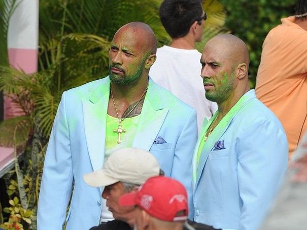 Дуэйн Джонсон и его дублер на съемках фильма «Кровью и потом: Анаболики».