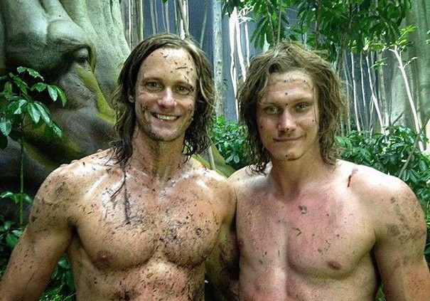 Александр Скарсгард и дублер Марк Слотер на съемках «Тарзана».