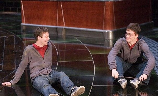 Дэниэл Рэдклифф с дублером Дэвидом Холмсом на съемках «Гарри Поттера».