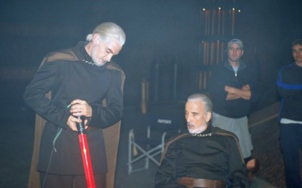 Сэр Кристофер Ли и его дублер на съемках фильма «Звездные войны. Эпизод II: Атака клонов».