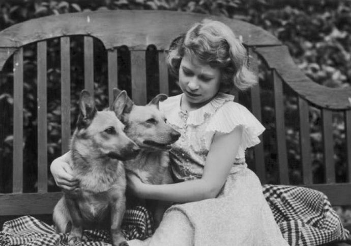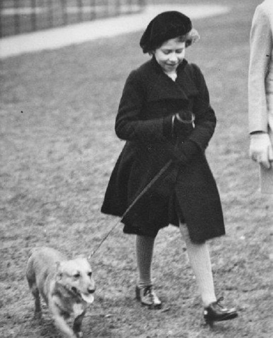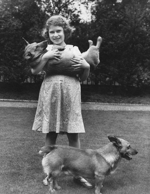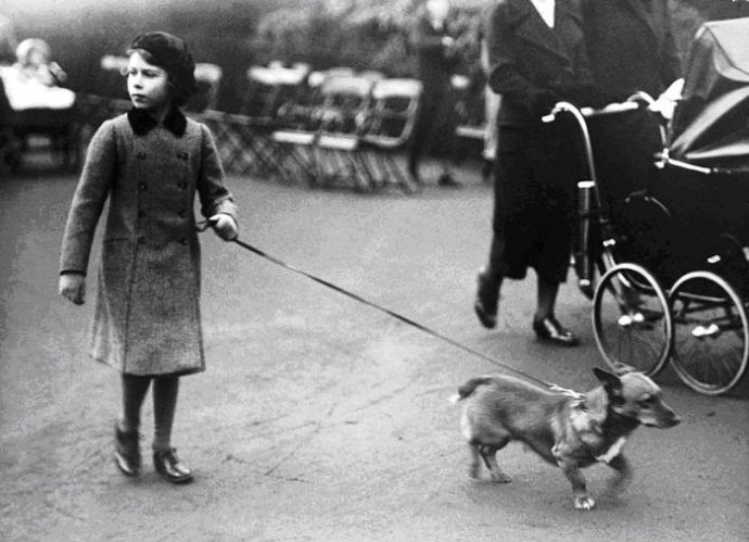 В обществе корги Елизавета живет с детства. В 1933 году при дворе появился очаровательный щенок - на коротеньких лапках, с большими глазами и ушами. Родители подарили его своим дочерям, старшей Елизавете тогда было семь лет. Официальное имя щенка было Розавел Золотой Орел, но все стали называть его Дуки. Елизавета влюбилась в него с первого же дня.
