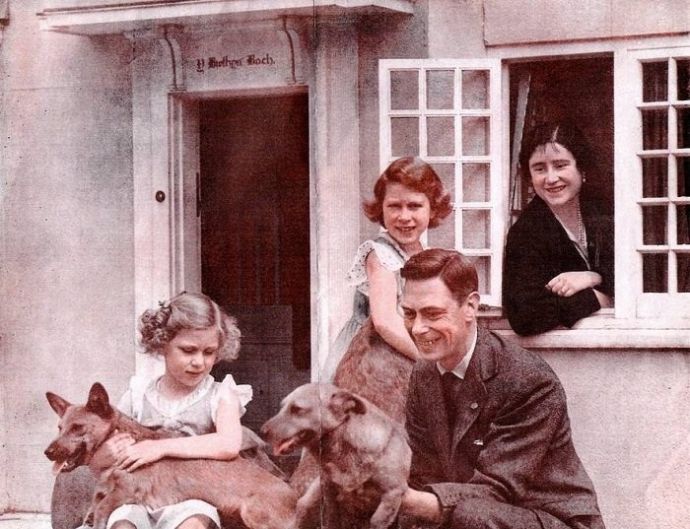 Королевская семья с корги «Сахарок» и «Конфетка», 1955 год