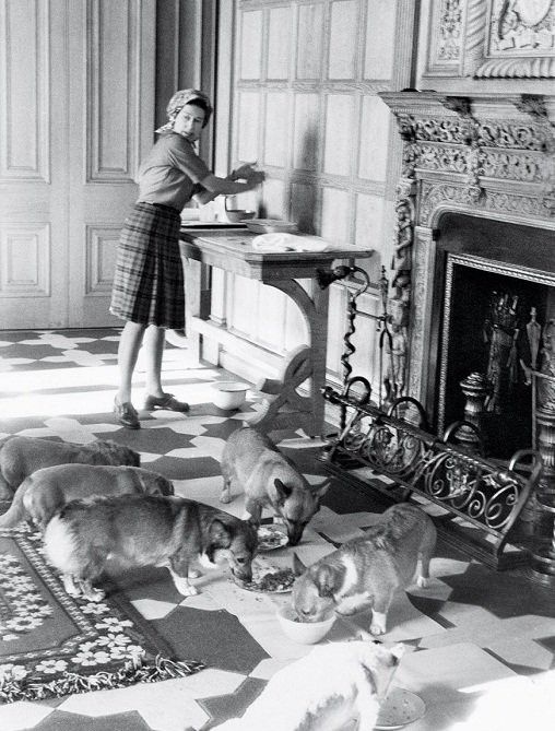 Особенно много времени она проводит с собаками, приезжая в загородную резиденцию Сандрингем. Облачившись в плащ и резиновые сапоги, королева подолгу гуляет со своими питомцами, потом их вычесывает. Здесь она сама их и кормит.